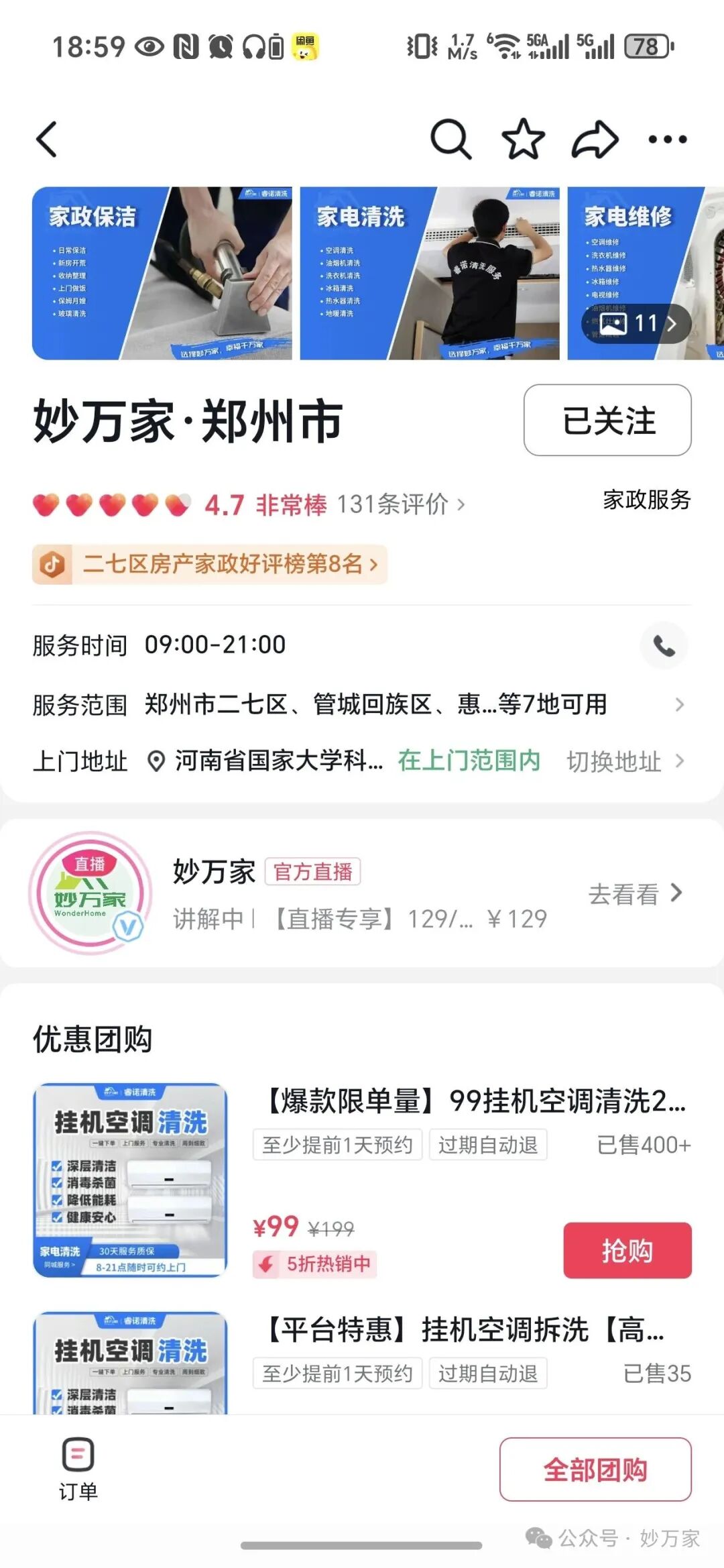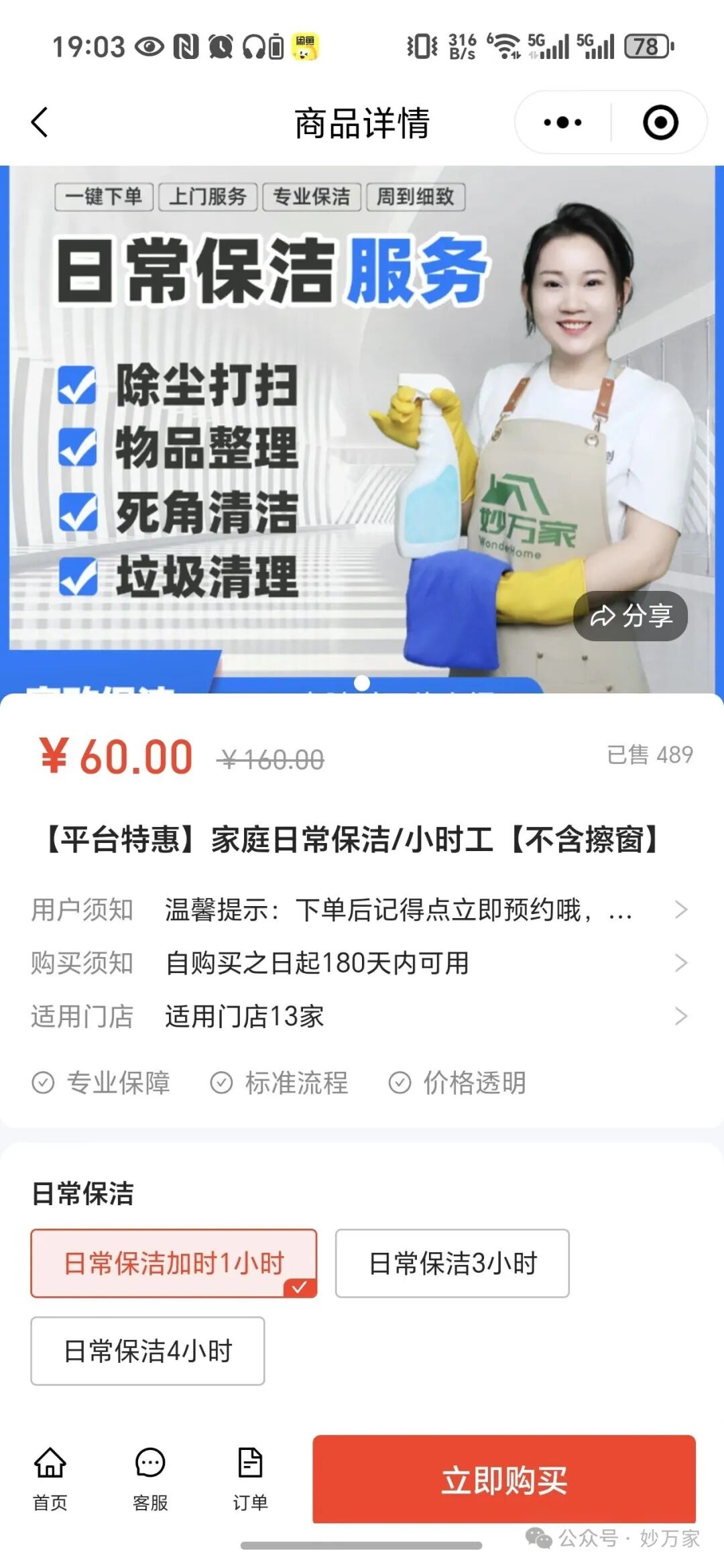 比如说妙万家,全国连锁门店300多家,深耕行业10余年,从店铺搭建、基础运营、接单引流、技术培训、售后服务等方面提供全方位的支持,帮您开通你的家政团购店,通过线上平台的流量扶持和精准推广,实现订单业务量的有效增长!